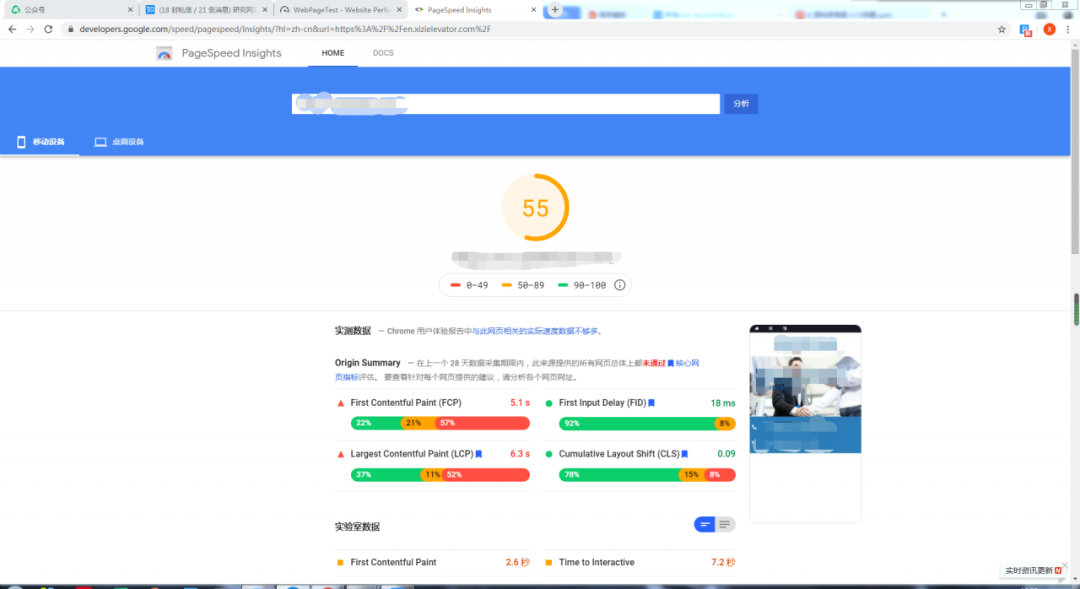 谷歌的PS Insights提供网页端和移动端两种测速结果,一般默认的是移动设备的测速结果。谷歌除了会给出实测数据外,还会给出优化建议和诊断结果。所以不管你之前用的什么测速软件进行测试并做了优化,最后都来谷歌跑一跑,看看它的评估侧重在哪些方面!