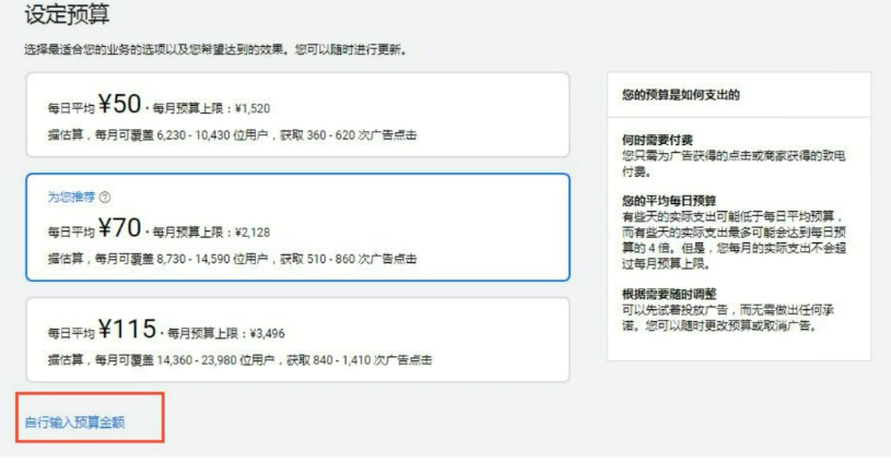 可以按照可以接受的预算来设定,但要保证预算足以支撑广告系列获得转化;如转化成本是100元,设置50元预算就不合适;