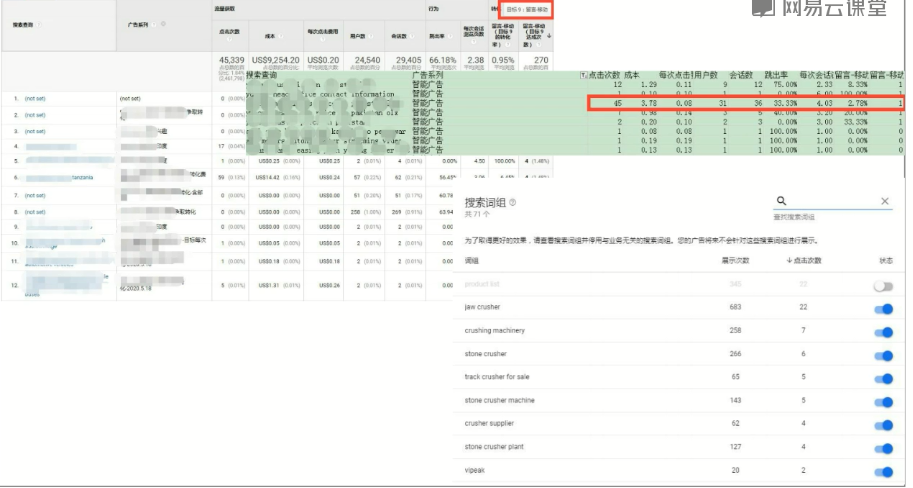 账户中可以看到客户的搜索词,有展示和点击数据,但是没有办法看每个关键字的花费及转化,如何调整?